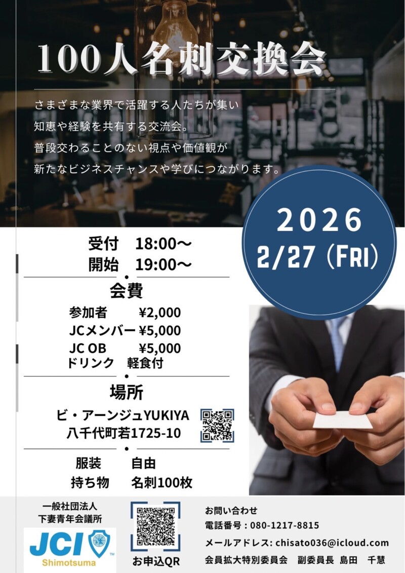 このたび様々な業種の方100名が集う名刺交換会を開催いたします。