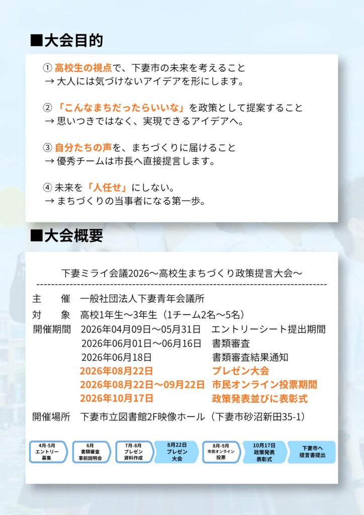「下妻ミライ会議2026~高校生まちづくり政策提言大会~」