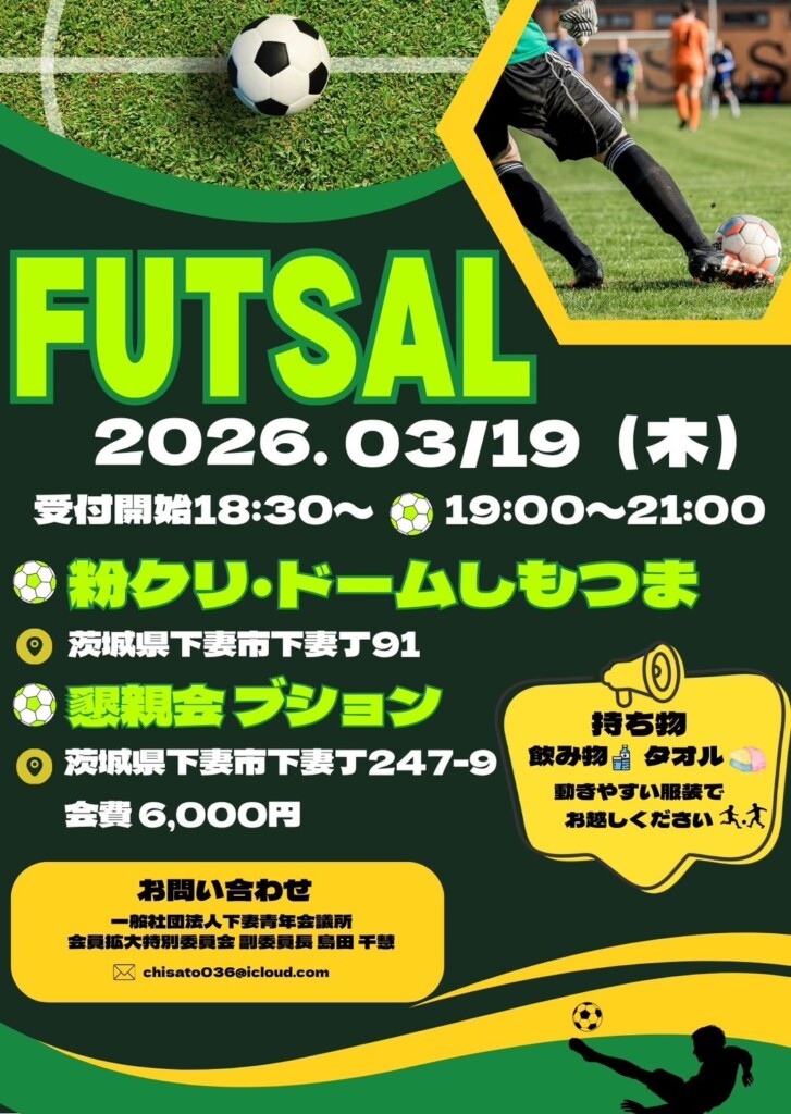 下妻青年会議所ではスポーツを通して交流を深めるフットサル交流会を開催します!